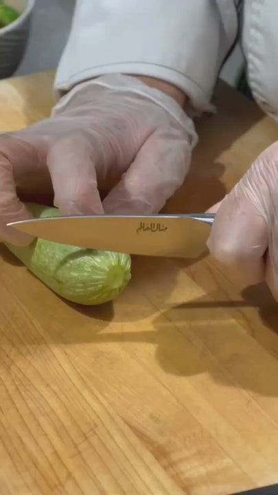 Experience the ultimate in precision and performance with The Quick Cut, our premium stainless steel chef knife from Manal AlAlem Kitchenware. Handcrafted from high-grade German 1.4116 stainless steel, this 3.5-inch blade offers unparalleled sharpness and durability.